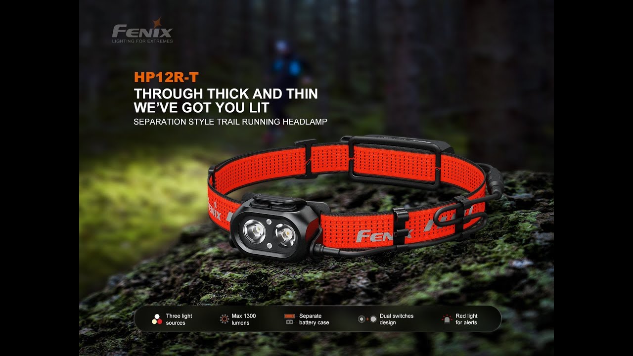 Fenix HP12R-T er en hodelykt med separat batteriboks og sport-hodebånd, samt hvit/varmhvit og rødt lys. Designet for terrengløpere som søker overlegen ytelse og komfort.