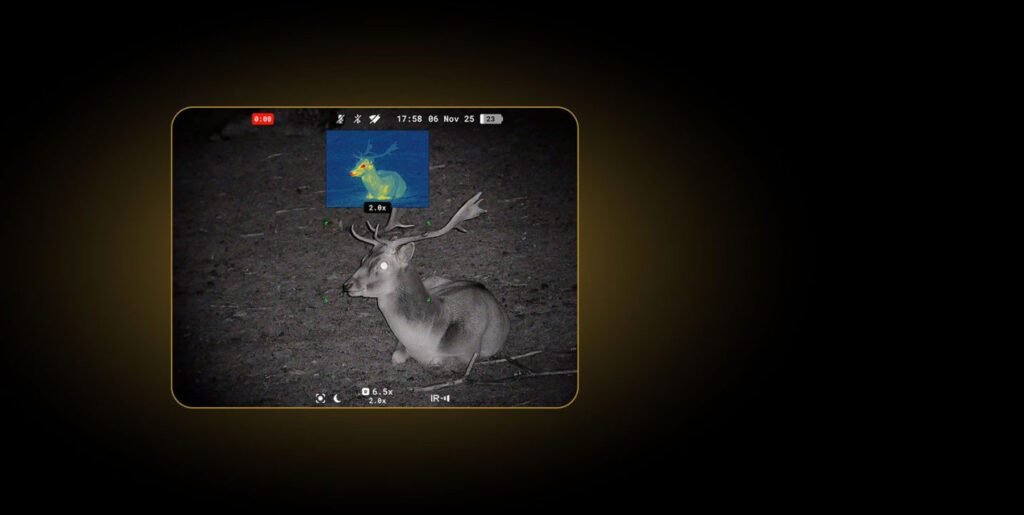 Se digitale og termiske kanaler samtidig med bilde-i-bilde-moduser, slik at du kan oppdage, bekrefte og spore mål trygt, selv under komplekse forhold eller forhold med dårlig sikt.