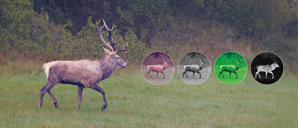 Bytt sømløst mellom fullfargevisning på dagtid, i skumringen og termisk visning, med en innebygd infrarød lykt for pålitelig sikt i svakt lys. Skann terreng, oppdag varmesignaturer og identifiser mål raskere for trygge og velinformerte beslutninger.