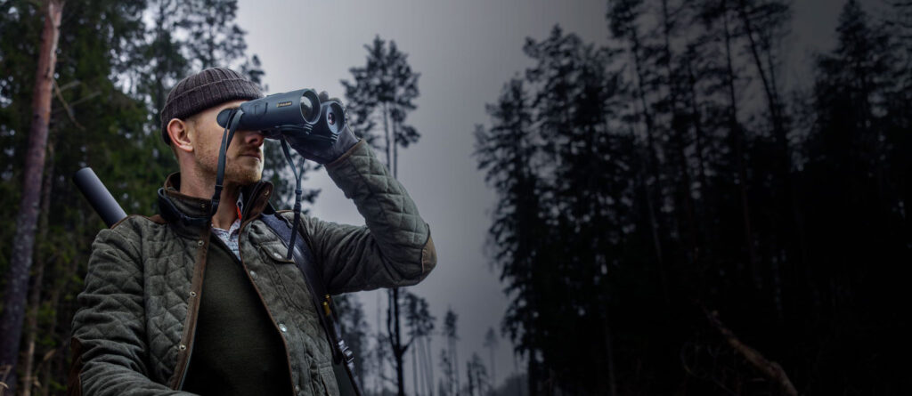 Premium multispektral kikkert med termisk, nattoptikk og fargebilder på dagtid, pluss en integrert laseravstandsmåler. Med sitt brede synsfelt er den bygget for skanning av skoger og blandet terreng, og gir maksimalt med bildedetaljer og rask deteksjon i dagslys, mørke eller skumring.
