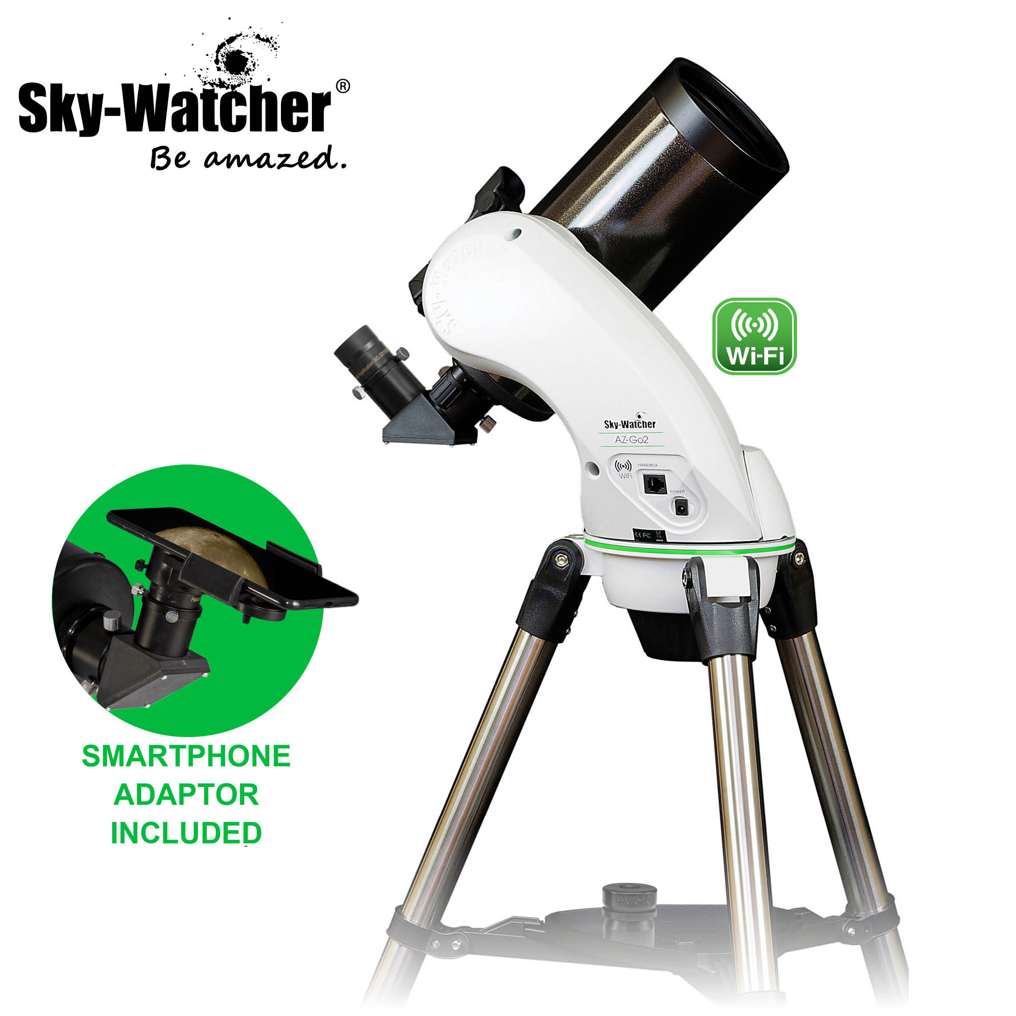 Den lette og svært bærbare Sky-Watcher SKYMAX-102 (AZ-Go2) er designet for å kunne kontrolleres trådløst med smarttelefonen eller nettbrettet, ved å bruke den gratis SynScan-appen for iOS eller Android.
